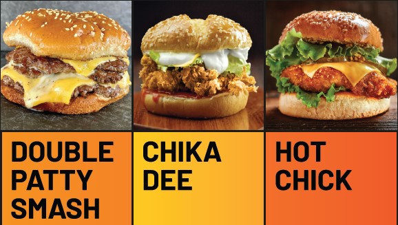 Double Patty Smash, Chika Dee, Hot Chick & Classic Cheeseburger.